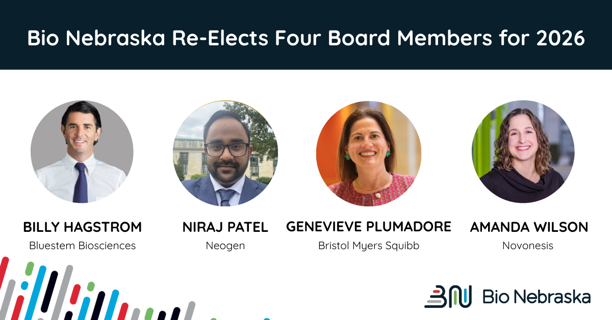 Bio Nebraska announced today that four Directors have been re-elected to the Board for an additional three-year term, beginning on January 1, 2026. Read more